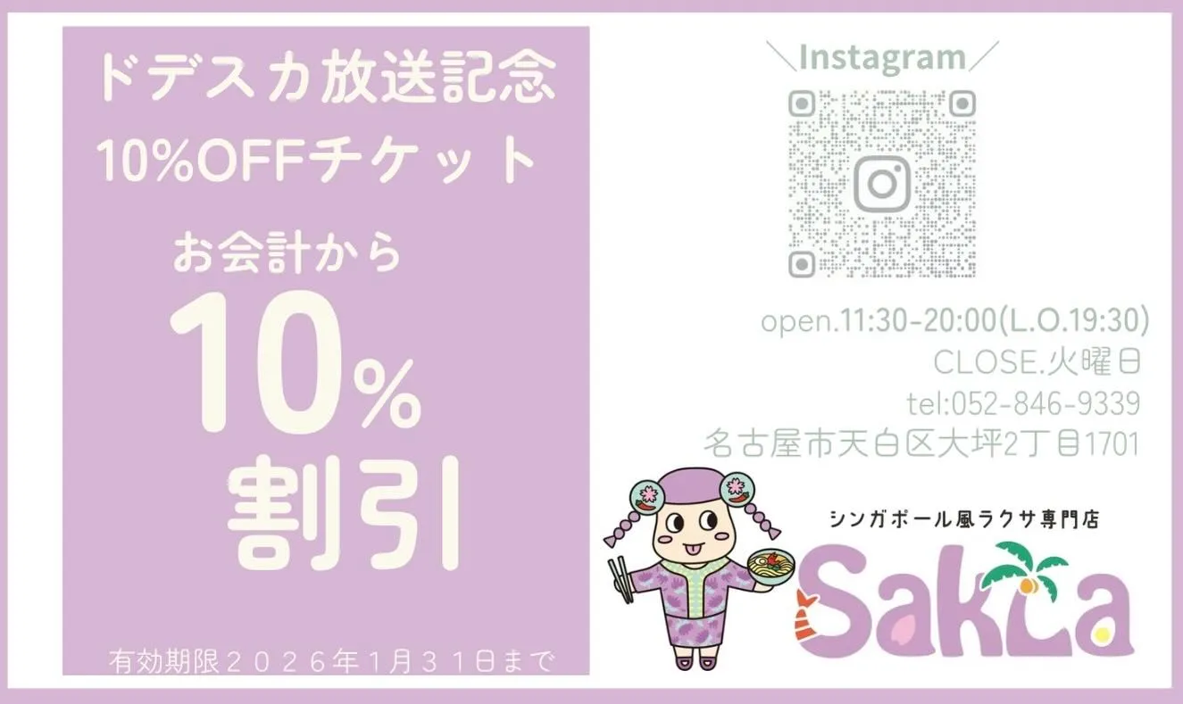 📣 ドデスカ!放送記念の10%オフ券、配布中です!!
