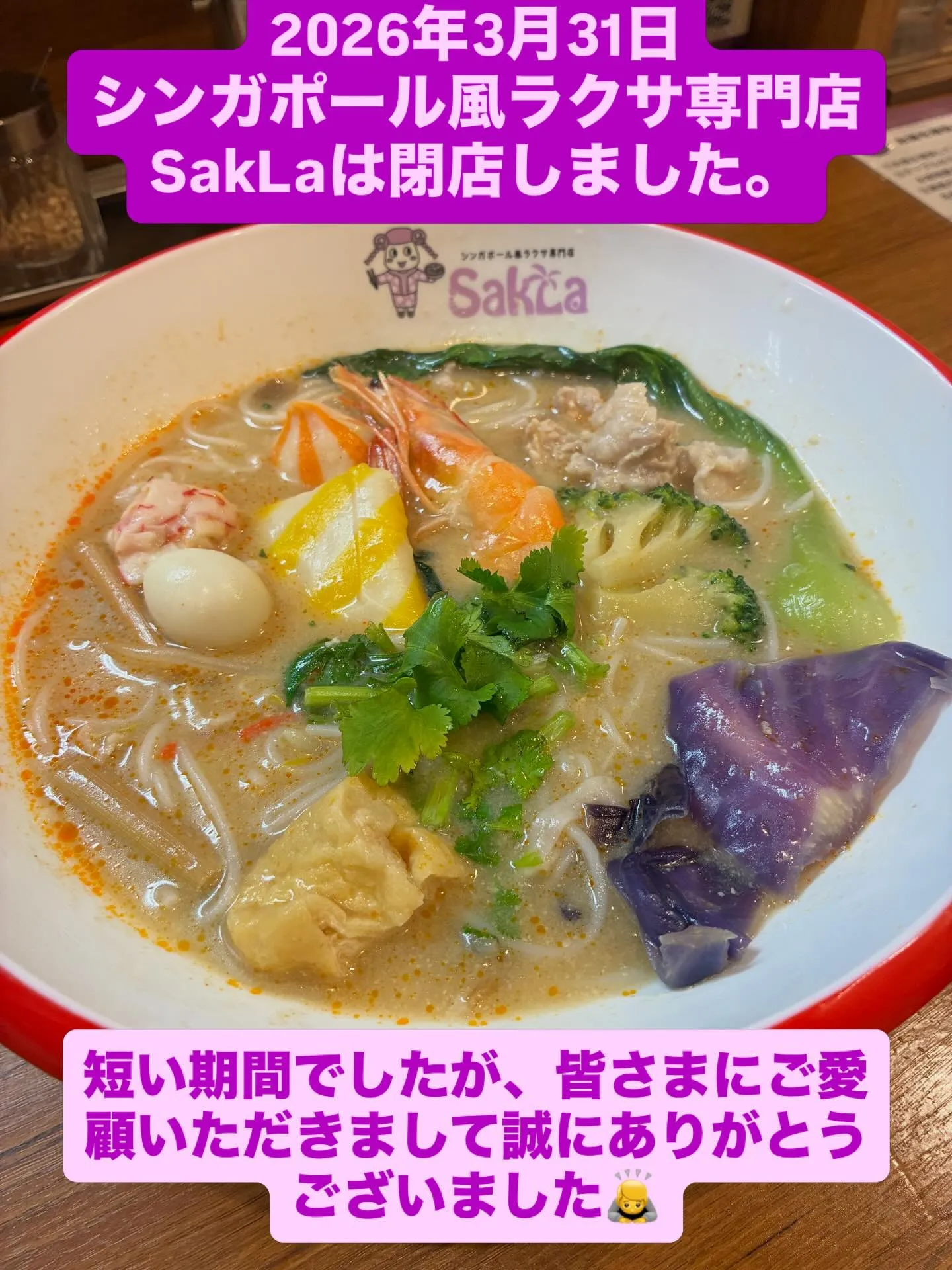 こんにちは!SakLa(サクラ)です🥥🍜