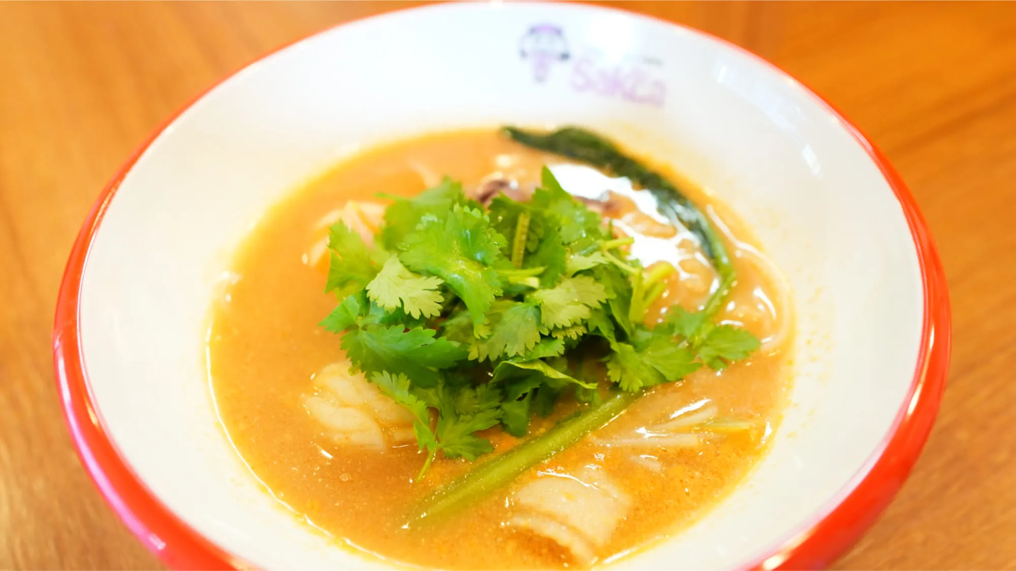 ラクサとは、海老出汁のコクとココナッツミルクのまろやかさ、スパイスの香りが重なり合う、東南アジアを代表する麺料理です。中でも「カトンラクサ」は、シンガポール東部のカトン地区で親しまれる、濃厚な風味が特徴の一杯。当店では、このカトンラクサをベースに、日本人が親しみやすいよう繊細な調整を加え、より洗練された味わいに進化させました。一口ごとに異国の情緒を感じさせながらも、どこか懐かしい安心感のあるスープは、きっと一回食べたらもう一度食べたくなること間違いなしです。